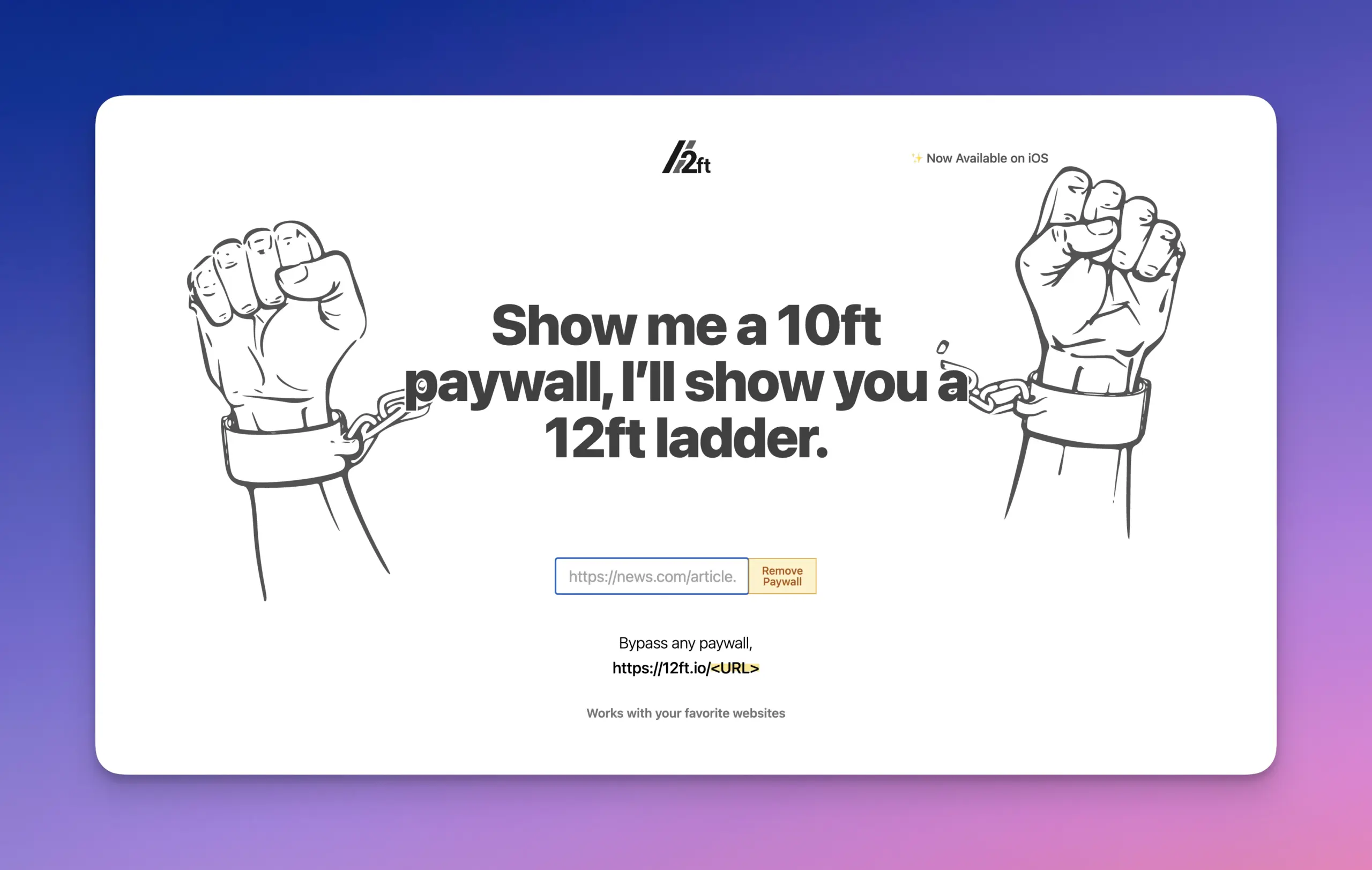 Nie jest wiadomym, kiedy 12ft.io faktycznie zaczęło funkcjonować, ale jeden z tweetów od samego twórcy witryny może wskazywać na to, że działała od co najmniej 2022 roku. W tym tweecie twierdził, że „8 na 10 wyników wyszukiwania w Google’u kierowało do stron oferujących zawartość wyłącznie dla płacących subskrybentów”.