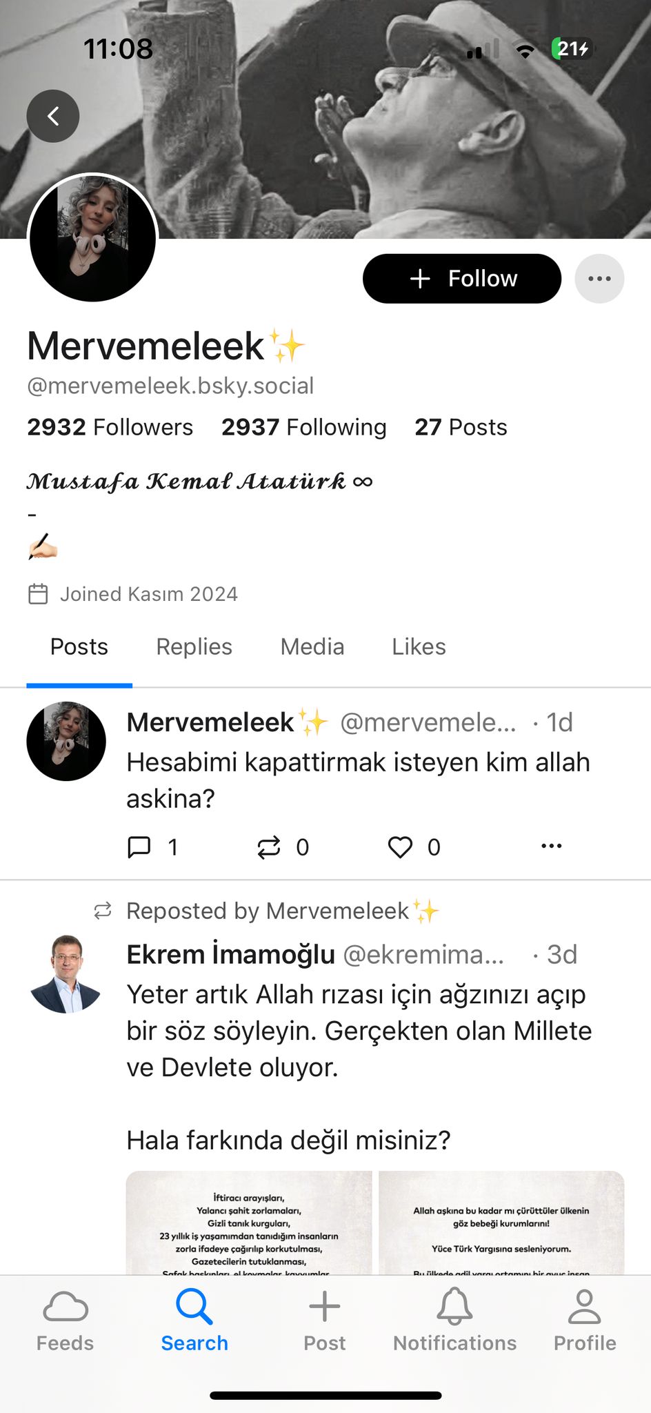 — Ci, którzy popierali opozycję, myśleli, że Bluesky jest odporny na cenzurę, i się na tym zawiedli, gdy 15 kwietnia zablokowano dostęp do konta o nazwie @carekavga.bsky.social — napisał Ali Safa Korkut w konwersacji e-mailowej ze mną.