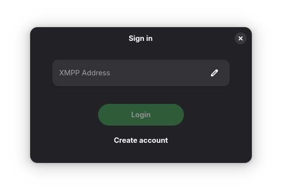 Klikamy na „Set up account”, żeby otworzyć okno logowania się. Zostaniemy poproszeni o wpisanie naszego identyfikatora XMPP. Jako iż jeszcze go zapewne nie posiadasz, kliknij na „Create account”.