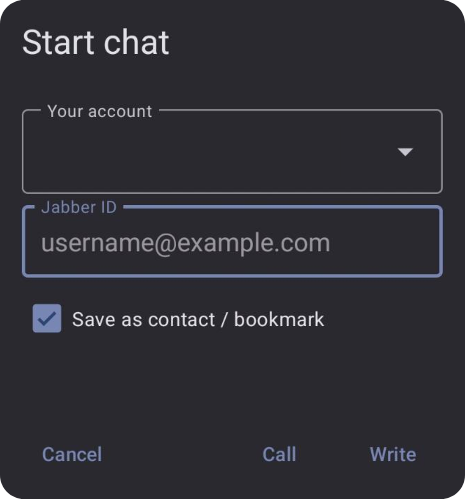 Podobnie jak w przypadku e-maila, przez „rejestrując się na XMPP”, tak naprawdę dokonujemy rejestracji na jednym z wybranych serwerów. Nie jest to jednak przeszkodą w komunikowaniu się z ludźmi z innych serwerów. Po rejestracji konta nasz identyfikator (w żargonie XMPP zazwyczaj będziemy mieli do czynienia z pojęciem „Jabber ID”) przybierze formę pseudonim@example.com, gdzie „pseudonim” to oczywiście nasz pseudonim, a „example.com” jest serwerem, na którym dokonaliśmy rejestracji. Nasz identyfikator wygląda dokładnie tak samo jak adres e-mail.