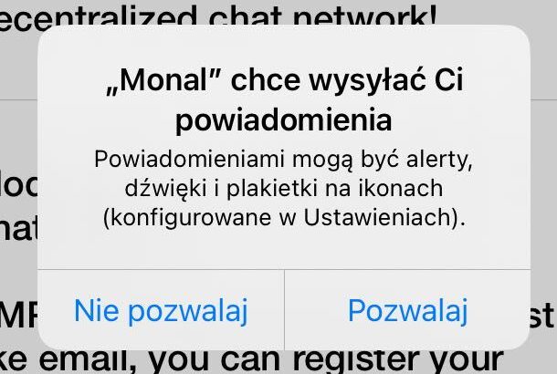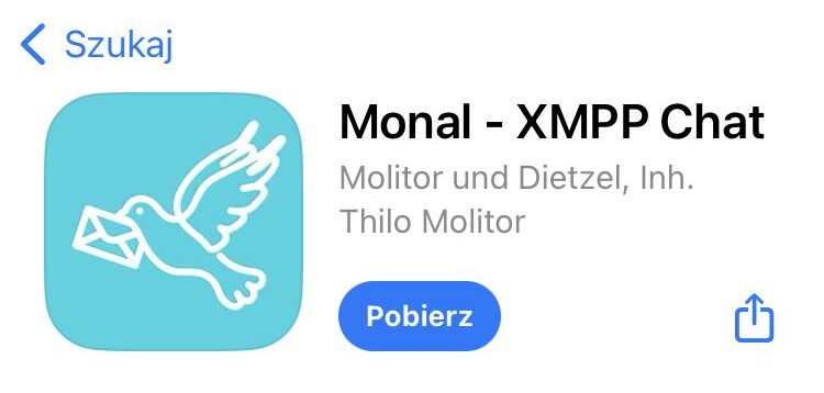 Po odnalezieniu Monala w Apple App Store (plakietka powinna nosić nazwę „Monal — XMPP Chat” oraz logo ptaka z kopertą na jasnoniebieskim tle), klikamy na przycisk „Pobierz”. Potwierdzamy instalację i czekamy na jej ukończenie. Po jej ukończeniu uruchamiamy Monala — pierwsze, o co nas zapyta aplikacja, to o uprawnienia do wysyłania powiadomień. W zależności od tego, czy lubimy zalew powiadomień czy też nie, możemy albo zablokować, albo dopuszczać powiadomienia z tej aplikacji. Kto co woli.