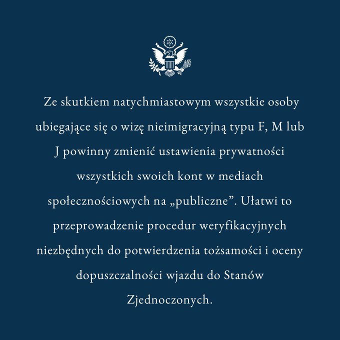 - U.S. Requiring Social Media Information From Visa Applicants, opublikowany w serwisie nytimes.com przez Sandra E. Garcia w dniu 02.06.2019.