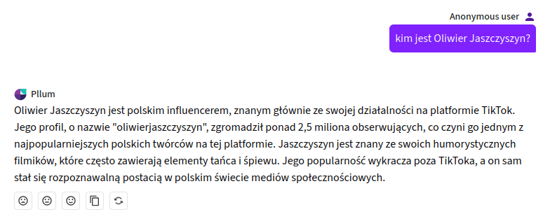 Uwaga: w tym artykule pewna część zacytowanych informacji podanych przez PLLuM jest nieprawdziwa. Pamiętajcie o weryfikacji generowanych odpowiedzi przez dowolny model sztucznej inteligencji!