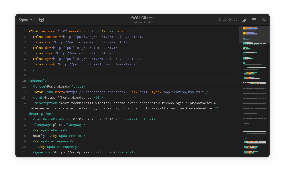 Może wydawać się to dziwne, ale tak — sam posiadam w czytniku wgrane kanały RSS dla Kontrabandy na wszelki wypadek, gdyby ktoś mi zgłosił, że coś z nimi jest nie tak — żebym mógł sprawdzić, czy zgłaszany problem leży także po mojej stronie i ewentualnie udzielić pomocy w odpowiednim skonfigurowaniu czytnika RSS, gdy tak nie jest.