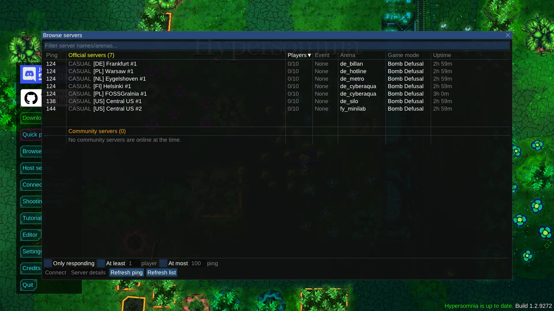 Lista serwerów gier dostępnych wewnątrz „Hypersomnii”